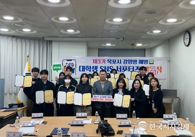 한국시사경제 의료보건팀 | 목포시는 지난 3월 30일 실습협약을 맺은 5개 대학과 함께 ‘감염병 예방 대학생 SNS 서포터즈 운영 업무협약’을 체결하고 발대식을 개최했다.