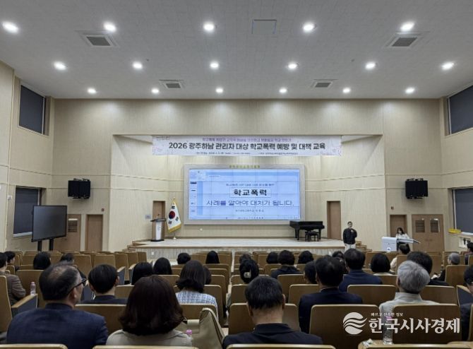 한국시사경제 문화팀 | 광주하남교육지원청은 4월 3일 광주하남교육지원청 대강당에서 관내 초·중·고·특수학교 및 각종학교 교장과 교감을 대상으로 ‘2026 관리자 대상 학교폭력 예방 및 대책 교육’을 실시했다.