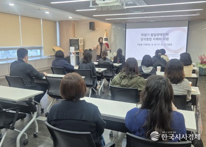 이날 시소감각통합상담연구소의 지석연 소장이 ‘학령기 발달장애인의 감각통합 이해와 지원’이라는 주제로 강연을 진행해 발달장애아 부모들로부터 큰 관심을 받았다.