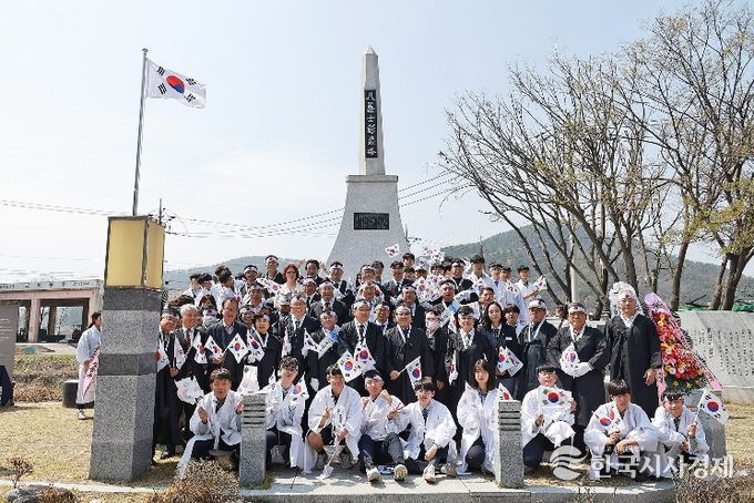 특히 이날 행사에는 지역 학생 75명이 대형 태극기 퍼레이드에 주도적으로 참여해 눈길을 끌었다. 팔의사를 선두로 학생들이 대형 태극기를 맞잡고 창의탑까지 만세를 외치며 행진하는 퍼포먼스를 선보였다. 미래 세대가 107년 전 그날의 뜨거운 함성을 생생히 재현해 내며 참석자들에게 큰 감동을 선사했다.