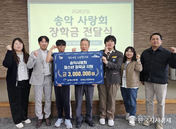 한국시사경제 충남취재본부 | 송악사랑회는 3일 송악청소년방과후아카데미에 장학금을 전달했다. 이번 장학금 전달식은 송악청소년문화의집에서 진행됐으며, 재학생 3명에게 매월 10만원씩 총 300만원이 지원된다. 송악사랑회는 청소년들의 올바른 성장에 기여하고자 하는 의지를 표명하며, 앞으로도 후원을 지속할 계획임을 밝혔다.