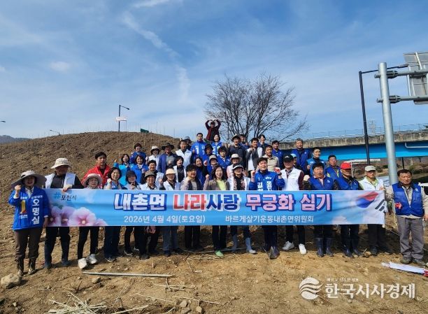 이번 행사는 무궁화 식재를 통해 지역공동체 의식을 높이고 애국심과 환경보호의 중요성을 알리기 위해 마련됐다. 이날 바르게살기운동 위원과 주민자치회 위원 등 40여 명은 내촌나들목 교차로 도로 법면에 무궁화 700주를 심었다.