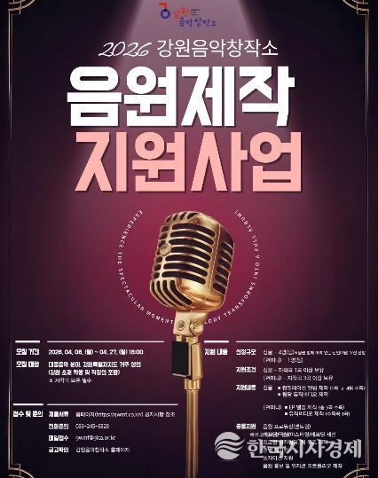 한국시사경제 권충언 기자 | 강원음악창작소가 오는 27일까지 도내 역량 있는 뮤지션을 발굴하기 위해 ‘2026년 음원제작 지원사업’의 참여자를 모집한다.