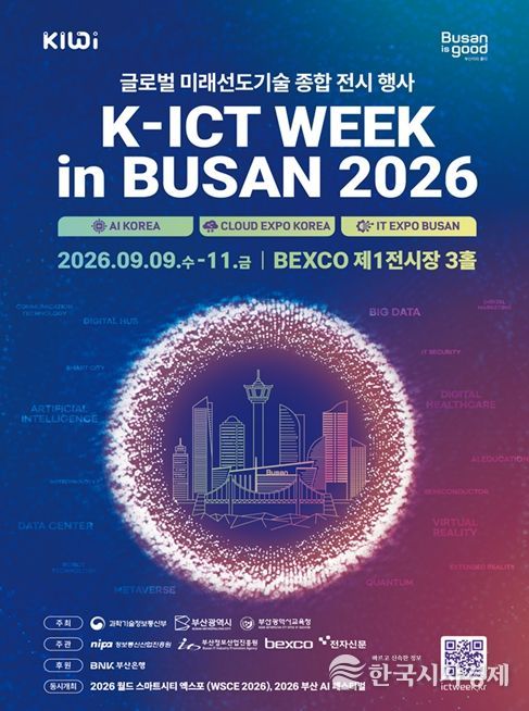 한국시사경제 디지털 뉴스팀 | 부산시는 인공지능 전환(AX) 시대를 선도하기 위한 지역 최대 정보통신기술(ICT) 종합 행사인 '2026 K-ICT WEEK in BUSAN'의 참가 기업을 오는 4월 13일부터 7월 31일까지 모집한다고 밝혔다.