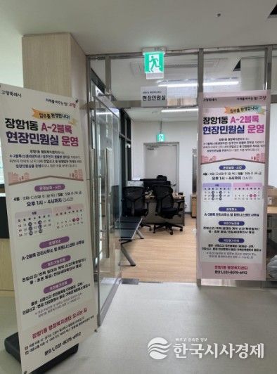 한국시사경제 권충현 기자 | 고양특례시 장항1동은 고양장항 공공주택지구 A-2블록 아파트 단지 내 ‘현장민원실’을 오는 14일부터 운영한다.