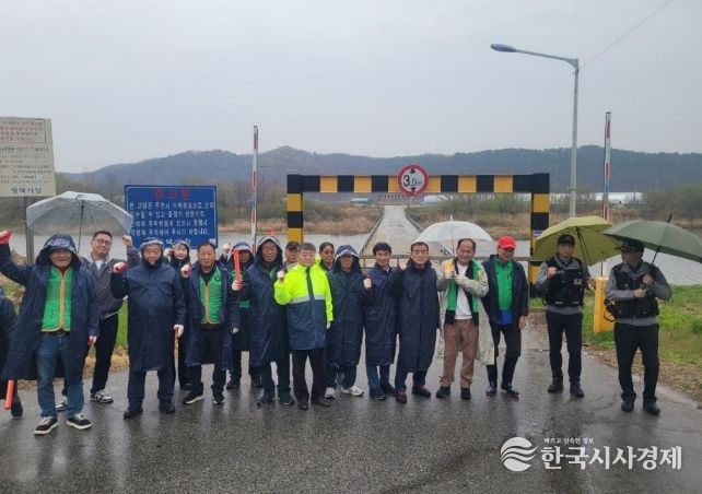 한국시사경제 사회팀 | 평택시 진위면 자율방재단은 지난 9일 방재단원과 공무원 등 30여 명이 참여한 가운데 진위천 세월교에서 집중호우 대비 실제 상황을 가상한 교량 통제 모의훈련을 실시했다.