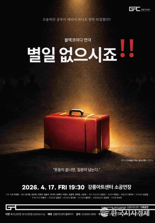 한국시사경제 권충언 기자 | 강릉아트센터는 오는 17일 오후 7시 30분, 소공연장에서 블랙코미디 연극 '별 일 없으시죠!!'를 선보인다.