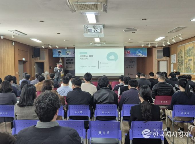 교육 첫날인 8일에 군청 대강당에서 전 직원이 참여한 가운데 ‘생성형 AI 활용 기초 교육’이 진행됐다. 이날 직원들은 AI 혁명의 시대에 나타난 기술의 동향과 이론적인 이해, 그리고 스마트폰 실습을 통해 AI의 기본 개념을 익히고 실제 업무 활용 방안을 직접 체험하며 디지털 전환의 발판을 마련했다.