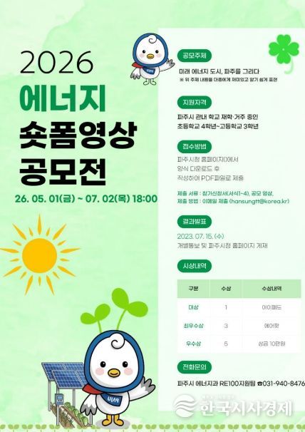 파주시 관계자는 “청소년들이 재생에너지를 ‘어려운 정책’이 아니라 ‘내가 참여할 수 있는 변화’로 느끼는 계기가 되길 바란다”라며 䄙분 영상으로 파주의 미래 에너지를 함께 그려 달라”라고 말했다.