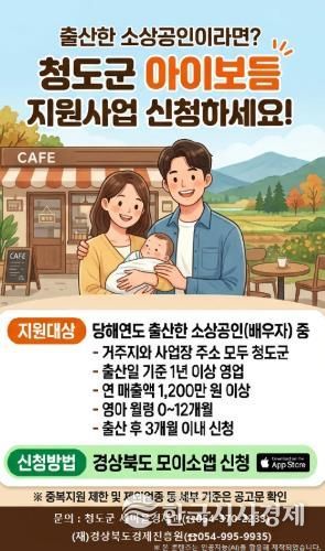 한국시사경제 권충언 기자 | 청도군은 출산으로 인한 소상공인의 경영 공백을 줄이고 안정적인 영업활동을 지원하기 위해 “2026년 소상공인 아이보듬 지원사업”을 추진한다고 밝혔다.
