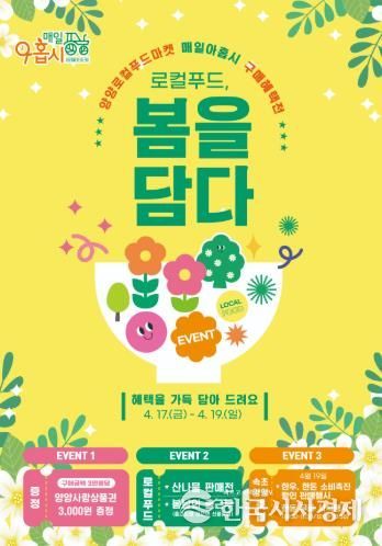 한국시사경제 권충언 기자 | 양양군이 오는 4월 17일부터 19일까지 3일간 양양 웰컴센터 2층 ‘매일아홉시’ 로컬푸드마켓에서 봄맞이 판매행사 '로컬푸드, 봄을 담다 - 매일아홉시 구매혜택전'을 개최한다.