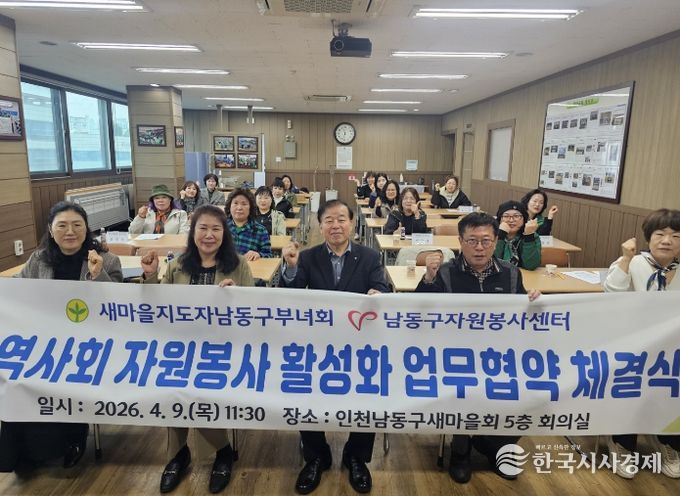 한국시사경제 윤광희 기자 | 인천시 남동구 새마을지도자남동구부녀회는 남동구자원봉사센터와 최근 인천남동구새마을회 5층 회의실에서 지역사회 자원봉사 활성화를 위한 업무협약(MOU)을 체결했다고 13일 밝혔다.