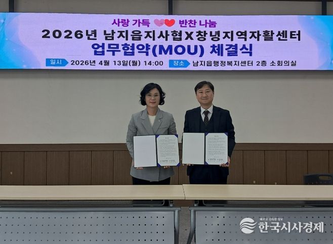 한국시사경제 문화팀 | 창녕군 남지읍 지역사회보장협의체(공공위원장 김선경)는 지난 13일 창녕지역자활센터와 ‘사랑가득 반찬나눔’ 사업 추진을 위한 업무협약(MOU)을 체결했다.