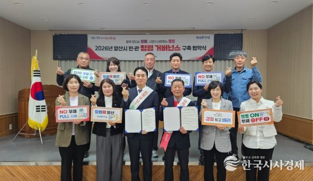 한국시사경제 노승선 기자 | 양산시 행정국은 지난 13일 물금읍행정복지센터 2층 대회의실에서 이통장연합회 양산시지회(지회장 김만재)와 청렴 실천을 위한 ‘민·관 청렴 거버넌스 협약식’을 개최했다.