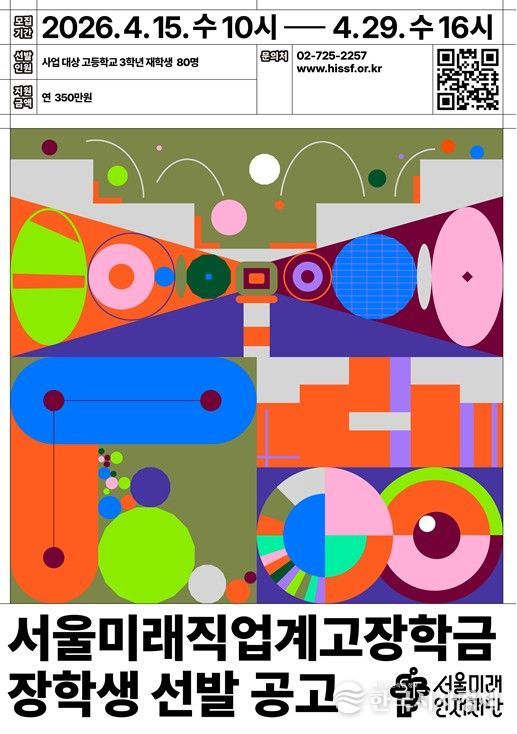특히 재단은 올해는 첨단산업 분야 실무 기술 인재가 될 고등학생의 직무·취업 역량 강화를 지원하기 위해 '서울미래직업계고장학금'을 신설했다. 서울시-교육청 협력체계 구축 직업계고등학교 3학년 재학생 80명을 선발해 1인당 연 350만 원(2회 분할 지급)을 지원한다.
