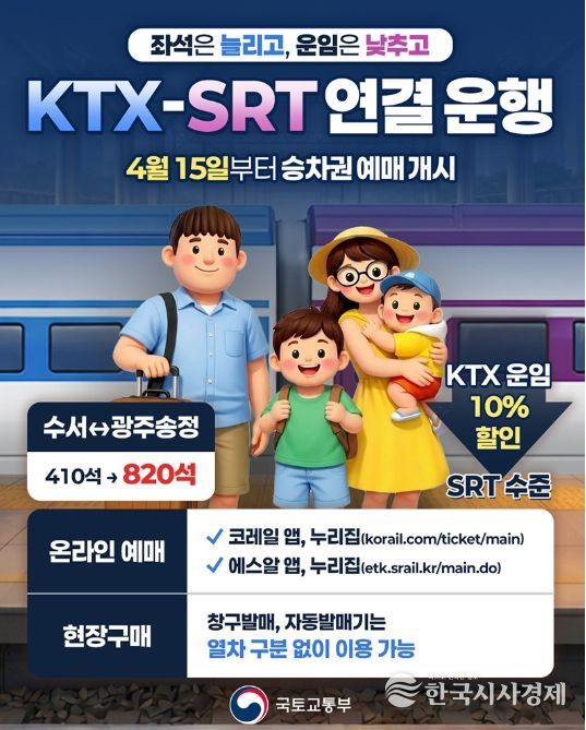 KTX 운임 10% 할인(SRT 수준)