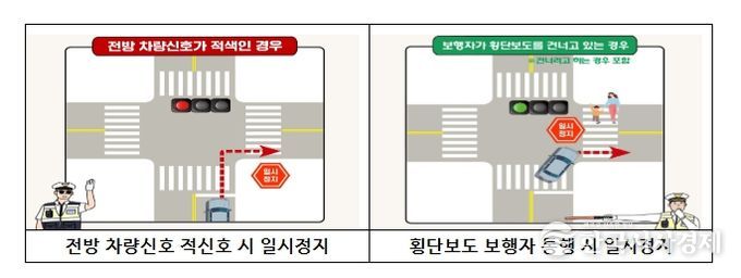 한국시사경제 김숙영 기자 | 경찰청은 각 시·도 자치경찰위원회 등과 협조하여 4월 20일부터 6월 19일까지 2개월간 우회전 통행 방법 위반에 대해 집중단속을 한다.