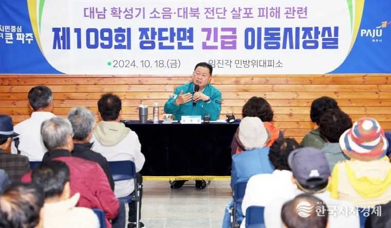 한국시사경제 경기북부취재본부 | 파주시는 18일 장단면 일대 민통선 마을 주민들과 이동시장실을 열어 최근 고조되고 있는 남북 접경지대 안팎의 군사 긴장으로 인해 나날이 심각해지는 주민 피해 실상을 청취하고, 대책을 모색했다.