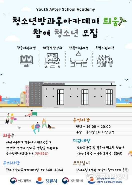 자세한 사항은 강릉시북부청소년문화의집 청소년방과후아카데미로 문의하면 된다.