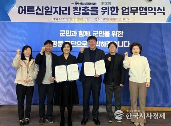 한국시사경제 권충언 기자 | 완주군시설관리공단이 사회적협동조합 양지뜰과 함께 어르신 일자리 창출 및 공공서비스 향상을 위한 업무협약을 체결했다.