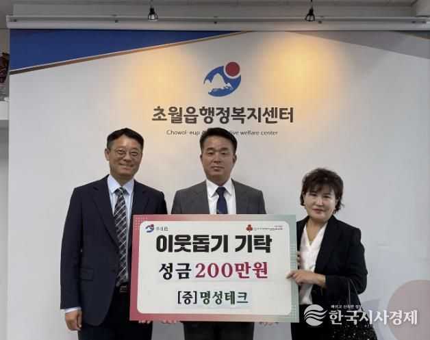 한편, 명성테크는 2023년부터 꾸준히 초월읍에 성금을 기탁하며 지역사회를 위한 이웃사랑을 실천해 오고 있다.