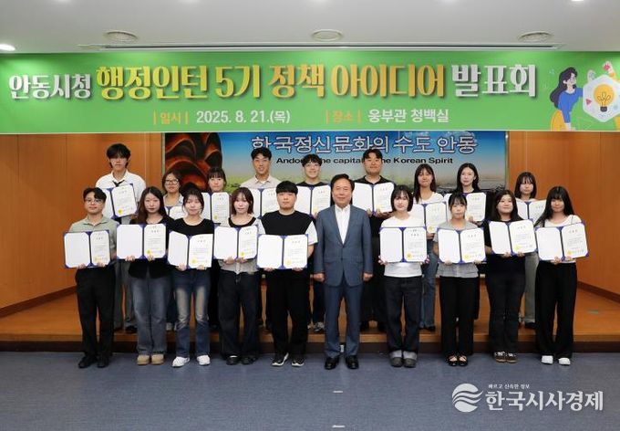 한국시사경제 경북취재본부 | 안동시는 21일 시청 청백실에서 행정인턴 정책아이디어 발표회를 열고, 두 달간 시정 현장에서 활동한 청년 인턴들의 경험과 정책 제안을 공유하는 자리를 마련했다.