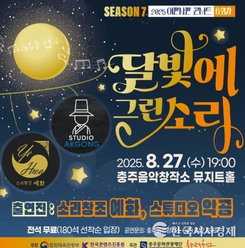 한국시사경제 충북취재본부 | 충주음악창작소는 오는 8월 27일 오후 7시, 창작소 내 뮤지트 홀에서 ‘2025 음악창작소 프로그램 운영지원 사업’의 일환으로 이판사판 콘서트 시즌7의 여섯 번째 공연인 '달빛에 그린 소리'를 선보인다.