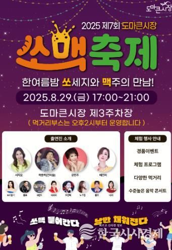 한국시사경제 대전취재본부 | 대전 서구는 8월 29일 도마큰시장 제3주차장에서 ‘2025년 제7회 도마큰시장 쏘맥축제’를 개최한다고 전했다.