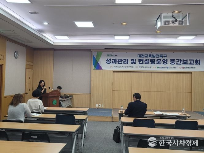 한국시사경제 대전취재본부 | 대전시는 8월 26일 시청 3층 세미나실에서‘대전교육발전특구 성과관리 및 컨설팅운영 중간보고회’를 열고, 57개 시행과제의 추진실적과 우수사례를 공유하며 78개 성과지표 달성도를 점검했다.