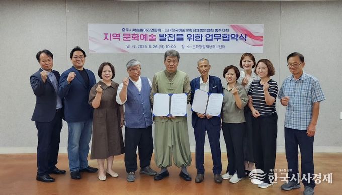 한국시사경제 충북취재본부 | 충주시평생학습동아리연합회(회장 한홍섭)와 (사)한국예술문화단체총연합회 충주지회(회장 최내현)가 지역 문화예술 발전을 위해 손을 맞잡았다.