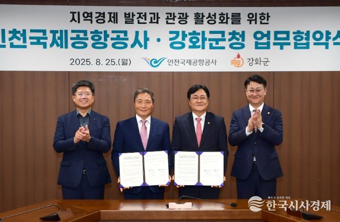 한국시사경제 김태훈 기자 | 강화군은 지난 25일 인천국제공항공사와 ‘관광 활성화 및 지역경제 발전 협력을 통한 상생’을 위한 업무협약을 체결했다.