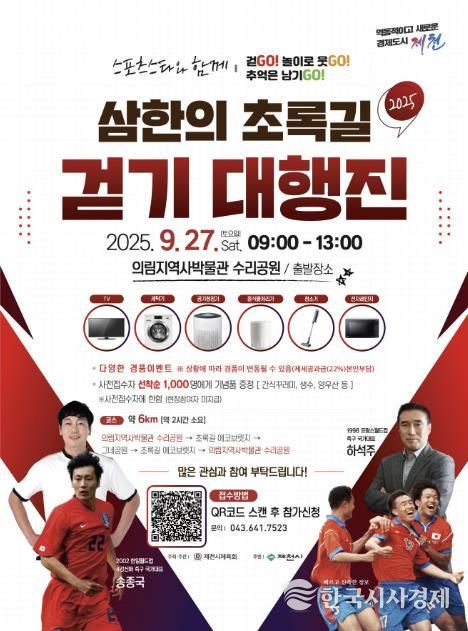 한국시사경제 충북취재본부 | 제천시체육회는 오는 9월 27일 오전 9시부터 오후 1시까지, 의림지 역사박물관 수리공원 일원에서'2025 삼한의 초록길 걷기 대행진'을 개최한다고 밝혔다.