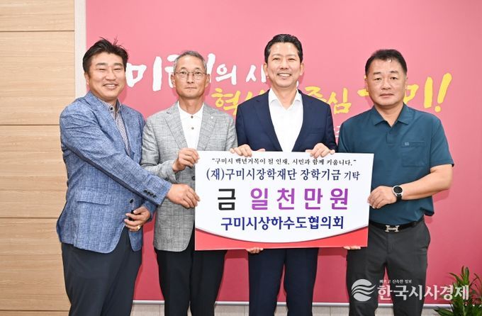 한국시사경제 경북취재본부 | 구미시상하수도협의회(회장 박연홍)는 지난 26일 선산출장소 시민소통실을 찾아 (재)구미시장학재단(이사장 김장호)에 장학기금 1천만원을 기탁했다.