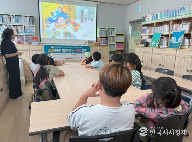 한국시사경제 울산취재본부 | 울산 동부도서관은 지난 13일부터 27일까지 동구 지역 작은도서관에서 초등학생을 대상으로 ‘실험으로 알아보는 과학원리’ 프로그램을 운영했다.