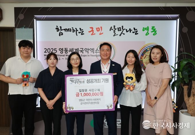 한국시사경제 충북취재본부 | 충북 영동군 어린이·사회복지급식관리지원센터는 28일 영동군청을 방문해 2025 영동세계국악엑스포의 성공 개최를 기원하며 100만 원 상당의 입장권 구매 약정을 체결했다.