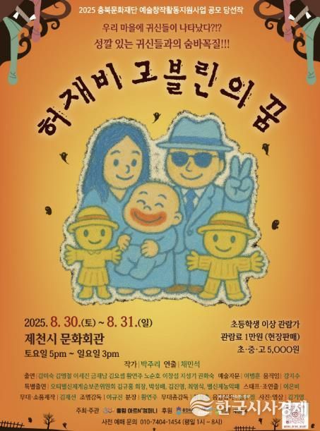 한국시사경제 충북취재본부 | 울림아트n'컴퍼니는 오는 8월 30일부터 이틀간 제천시문화회관에서 신작 창․제작 연극 '허재비 고블린의 꿈'을 선뵌다. '2025 충북문화재단 예술창작활동지원사업'공모에 선정된 작품으로 지난해 '마지막 소원'에 이어, 제천 고유의 전통문화를 재해석하여 연극으로 개발한 지역특화공연이다.