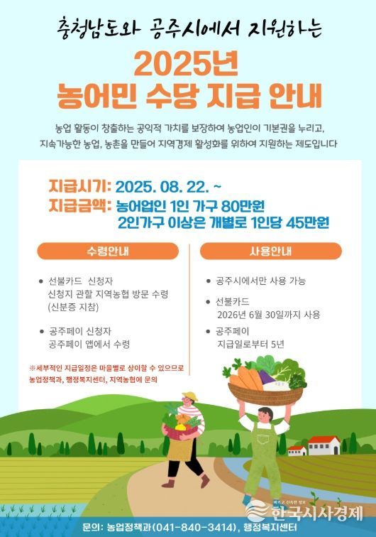 수당은 사전에 선택한 농협 선불카드 또는 공주페이로 지급된다.