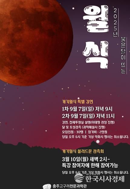 한국시사경제 충북취재본부 | 충주고구려천문과학관에서는 9월 7일 밤부터 9월 8일 새벽까지 개기월식 강연회 및 심야 관측회를 개최한다.