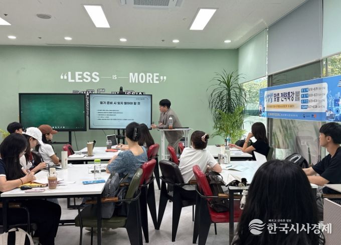 이달 18일부터 28일까지 열린 하반기 취업스터디 맞춤 전략 특강에서는 45명의 구직자가 참여한 가운데 ▲반도체산업 ▲자동차산업 ▲석유화학 ▲공기업 등 4개 산업 분야를 대상으로 집중 강의를 진행했다.