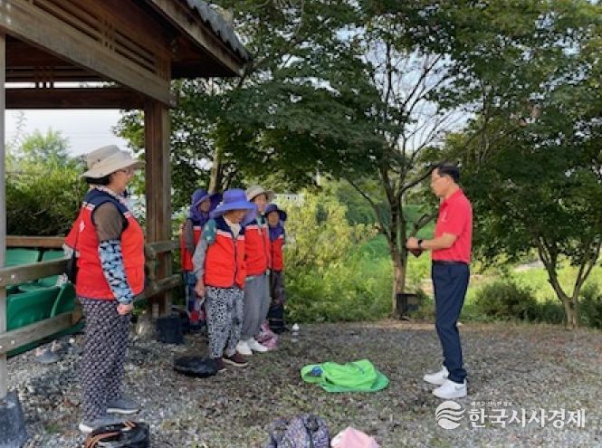 한국시사경제 김태훈 기자 | 강희천 금성면장은 8월 28일 파초2리 마을회관 일원에서 노인일자리 현장 안전 수칙 안내에 나섰다.
