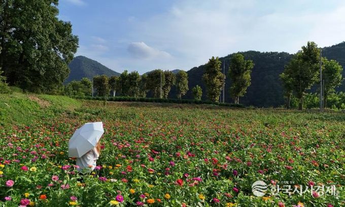 한국시사경제 충북취재본부 | 충북 단양군 가곡면 사평2리 아평꽃정원에 다채로운 색감의 백일홍이 활짝 피어 마을을 찾는 이들의 눈길을 사로잡고 있다.