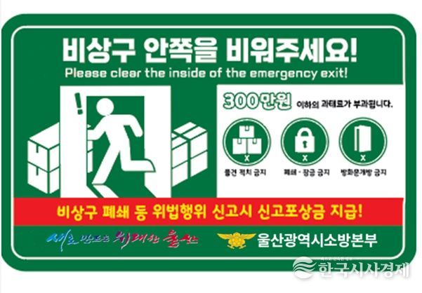 한국시사경제 오영주 기자 | 울산소방본부는 9월 1일부터 30일까지 한 달간‘소방시설 불법행위 신고포상제’집중 홍보 기간을 운영한다고 밝혔다.