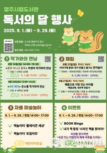 한국시사경제 경북취재본부 | 영주시립도서관은 9월 ‘독서의 달’을 맞아 지역 주민의 책 읽는 문화 확산과 독서문화 향유를 위한 다양한 프로그램을 운영한다.