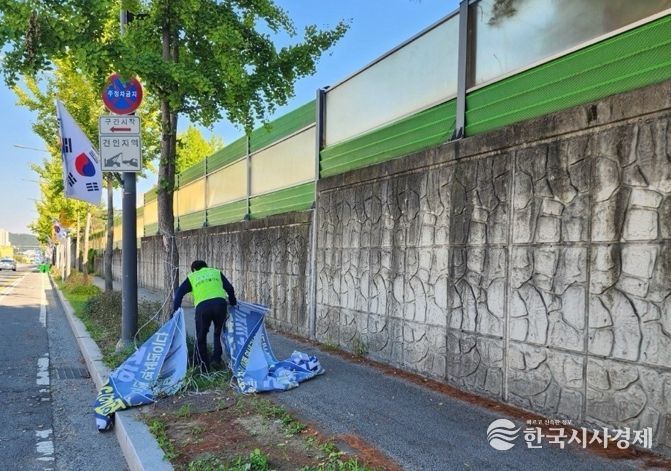유성구는 지난 4월부터 6월까지 불법광고물 수거단을 운영해 현수막(족자형 포함) 5,853건, 벽보(일반전단 포함) 1만 7,332건, 명함형 전단 3만 5,029건 등 5만 8,000여 건의 불법광고물을 정비했다.