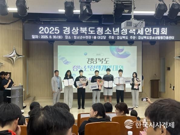 한국시사경제 경북취재본부 | 경주시 화랑마을 청소년운영위원회 ‘나비청화’가 지난 8월 30일 안동시청소년수련관에서 열린 ‘2025 경상북도 청소년정책제안대회’ 본선에서 ‘장려상’을 수상했다.