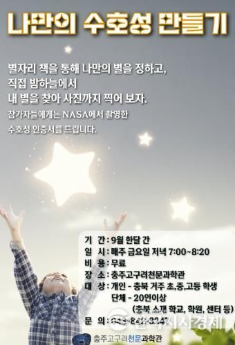 한국시사경제 충북취재본부 | 충주고구려천문과학관에서는 9월 한 달 동안 매주 금요일 저녁마다 ‘나만의 수호성 만들기’ 행사를 개최한다.