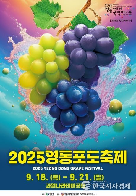 한국시사경제 충북취재본부 | 충북 영동군과 영동군문화관광재단은 오는 18일부터 21일까지 과일나라테마공원 일원에서 2025 영동포도축제를 개최한다고 2일 밝혔다.