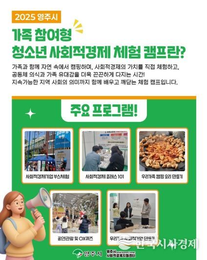 한국시사경제 경북취재본부 | 영주시는 영주시사회적경제지원센터와 함께 9월 1일부터 15일까지 ‘2025 영주시 가족참여형 청소년 사회적경제 체험 캠프’ 참가자를 모집한다.