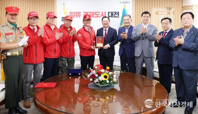 한국시사경제 대전취재본부 | 해병대전우회는 9월 2일 대전시청 10층 응접실에서 이장우 대전광역시장에게 감사패를 전달했다.