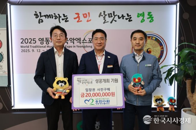 한국시사경제 충북취재본부 | 영동양수건설소는 2일 영동군청을 방문해 2025 영동세계국악엑스포의 성공 개최를 기원하며 2,000만 원 상당의 입장권을 사전 구매했다.